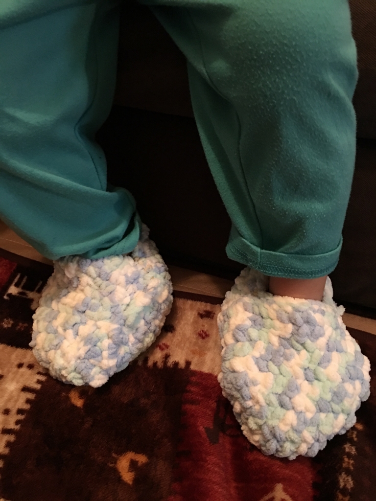 2017-03-01 もこもこ 編み物 100均で買ったモコモコ毛糸(アイスブルー)で編んだルームシューズです。 本人は微妙な感じでしたが、履いていると温かいので少しずつ履いてくれるようになりました🙂 全部のお部屋に敷物をしているわけじゃないので冷たくなってしまう息子の足がずっと気になっていたので完成してよかったです。 何回も履かせて脱げないよう微調整してやっとできました。 冬はもう終わりそうですが、間に合って良かった。
